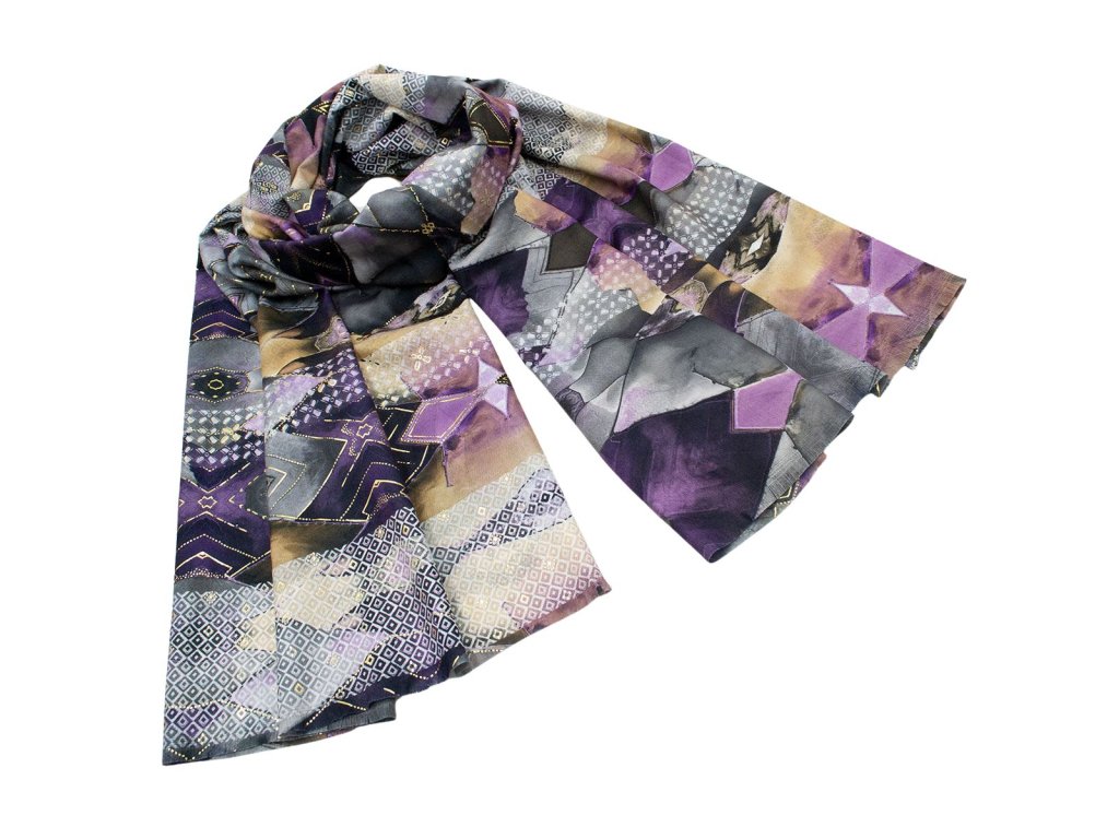 Maxi šála - fialová s abstraktním potiskem