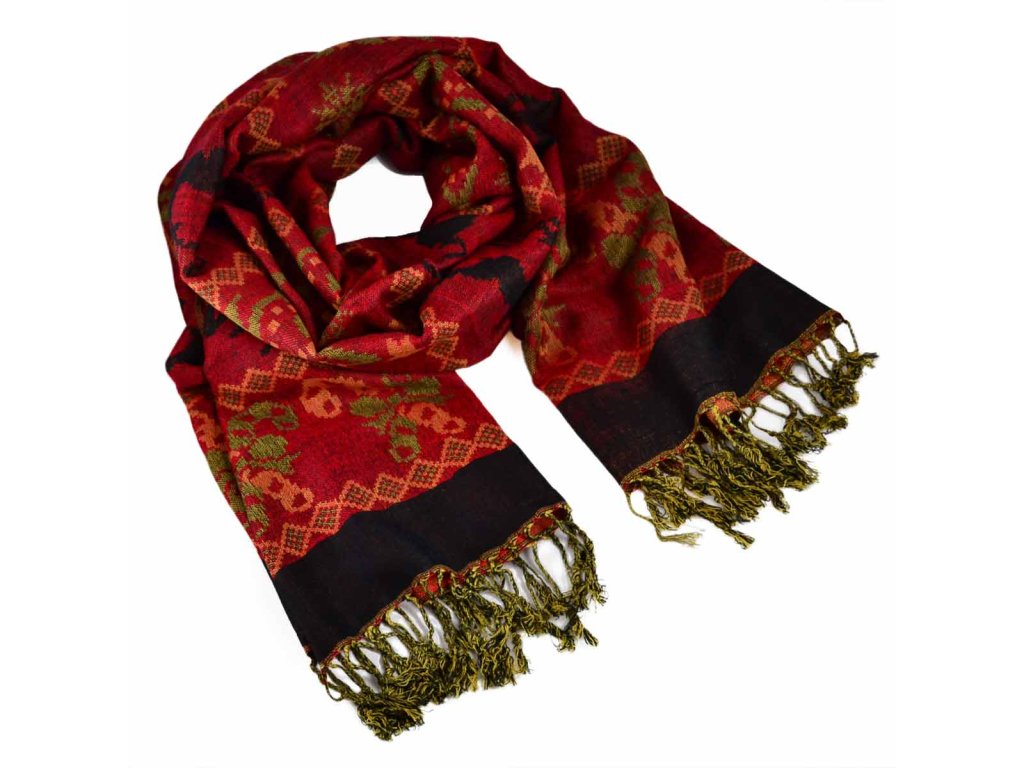 Šála kašmírová - červeno-černá norský vzor