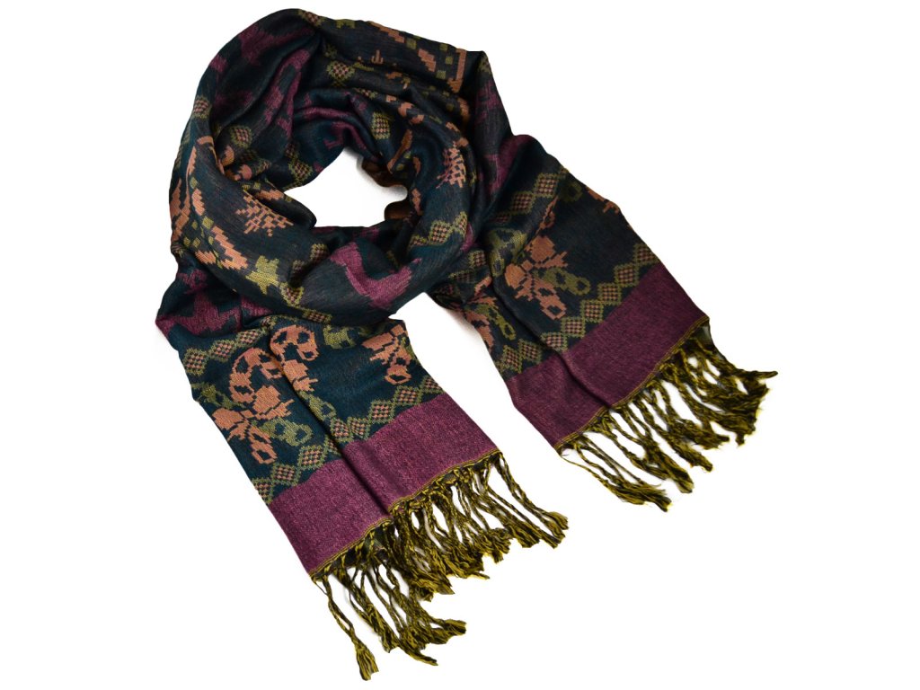 Šála kašmírová - zeleno-fialová norský vzor