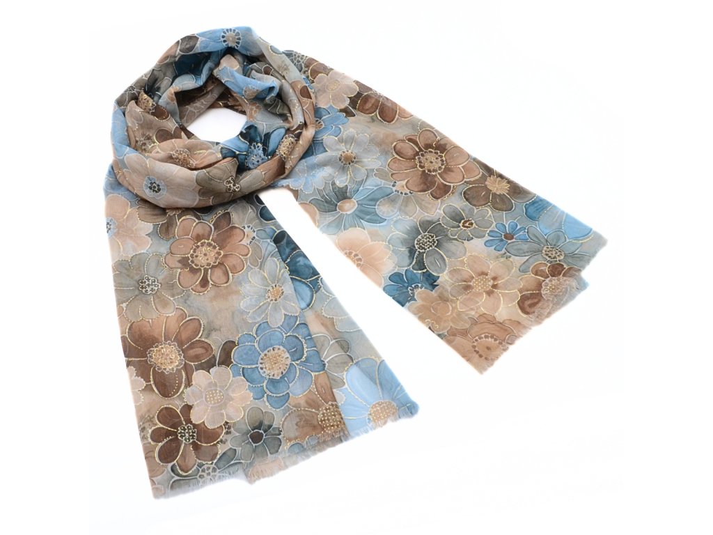Klasická dámská šála z velmi jemného materiálu, je měkká a dobře se nosí v jakékoli roční období. Zajímavý potisk dodává celému looku uvolněný půvab.