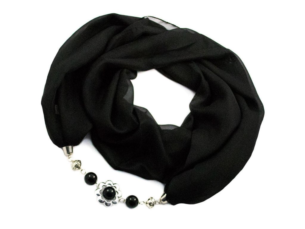 Ruční výroba módních doplňků - šál a šátků s bižuterní ozdobou.
