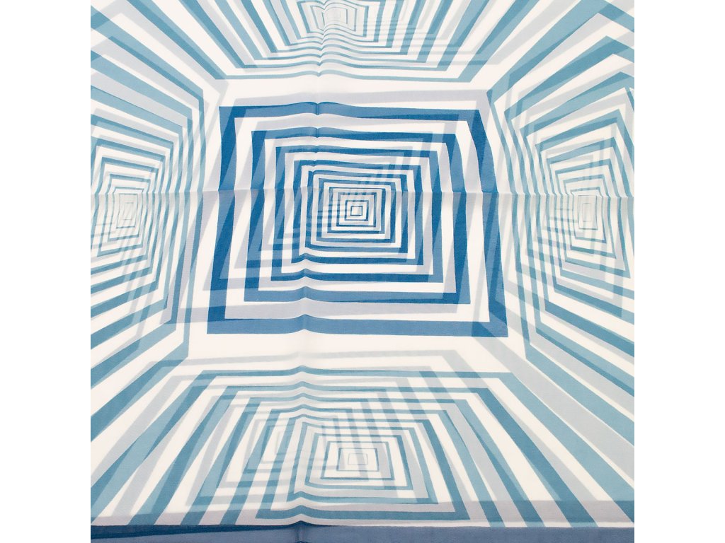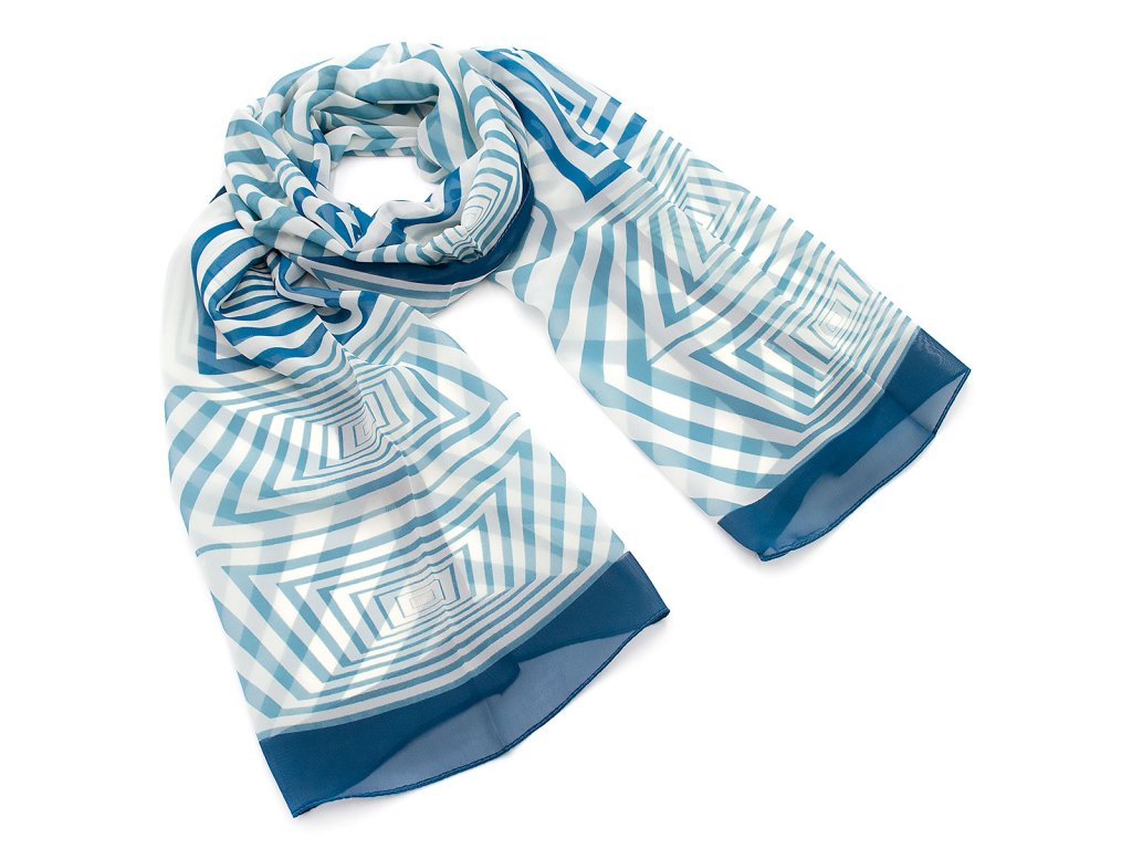 Šála vzdušná - bílo-modrá s geometrickým potiskem
