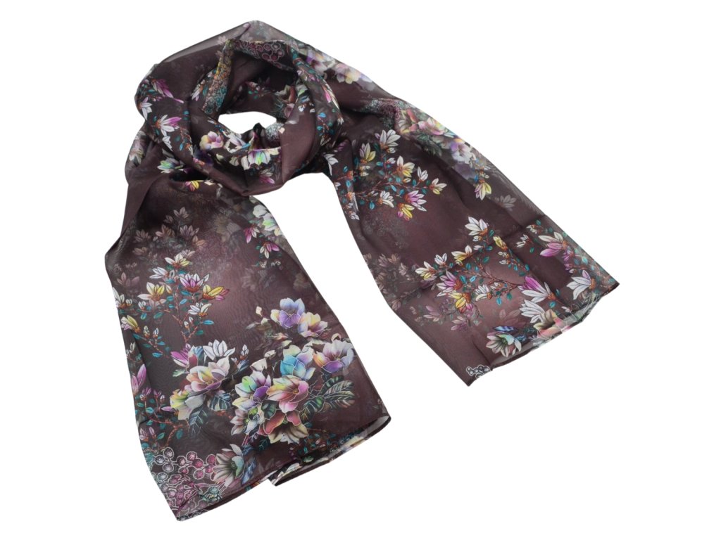 Šála vzdušná - tmavě hnědá s potiskem květin