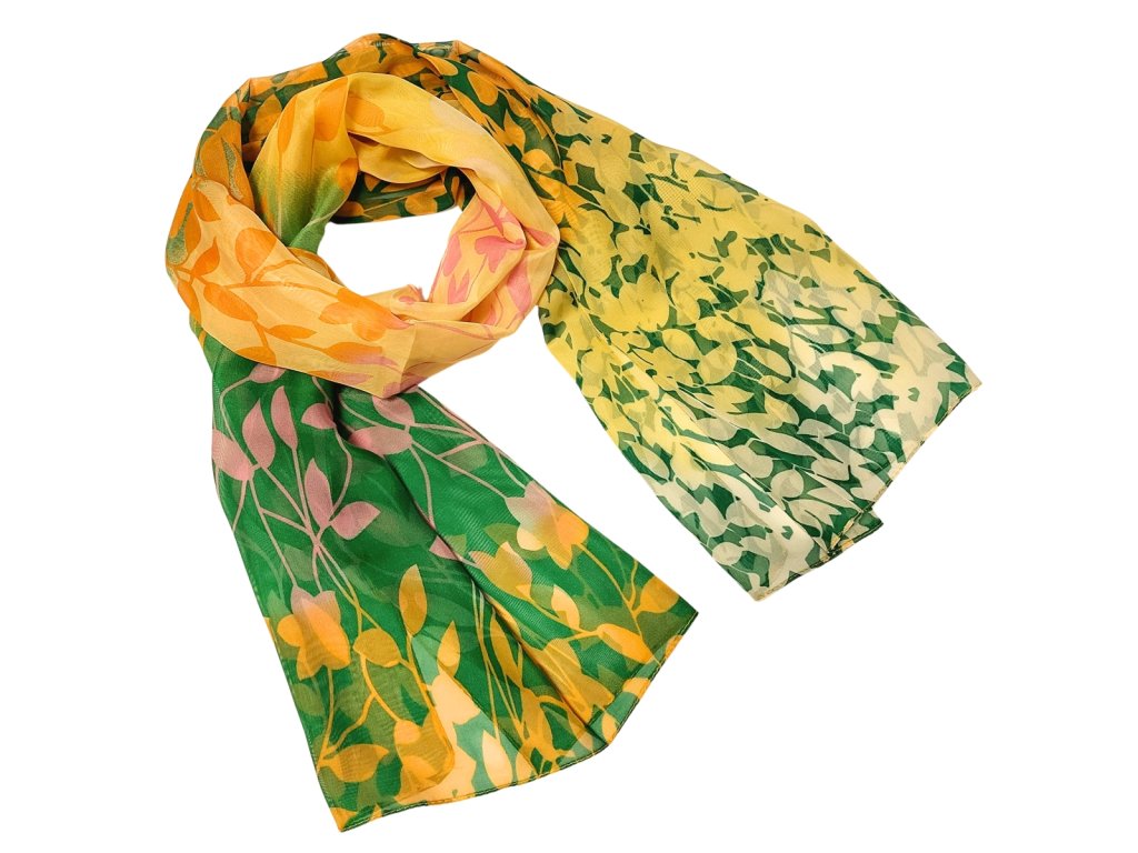 Šála vzdušná - zeleno-žlutá s potiskem listů