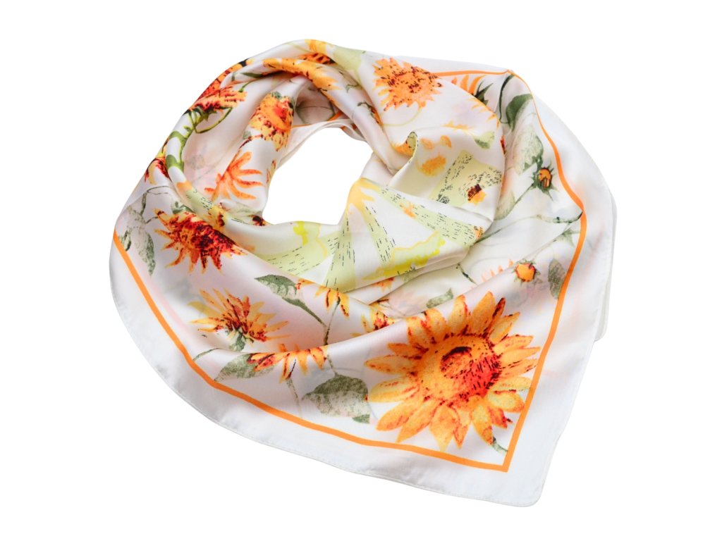 Šátek - bílo-oranžový s květinovým potiskem