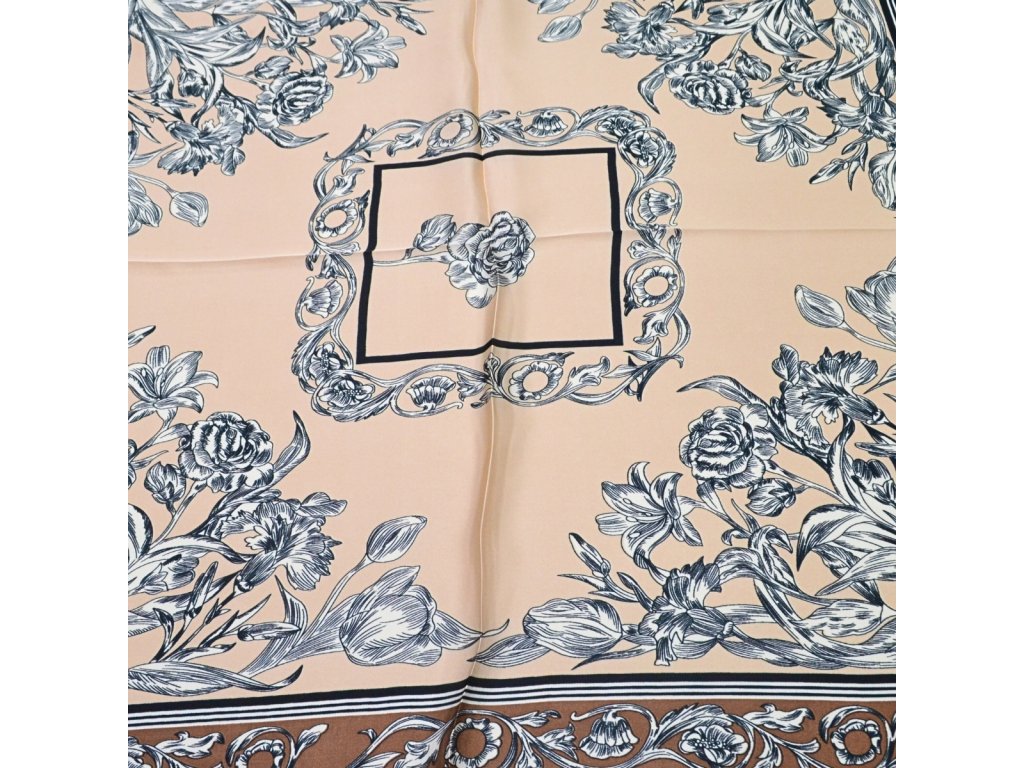 Šátek - hnědý s květinovým vzorem