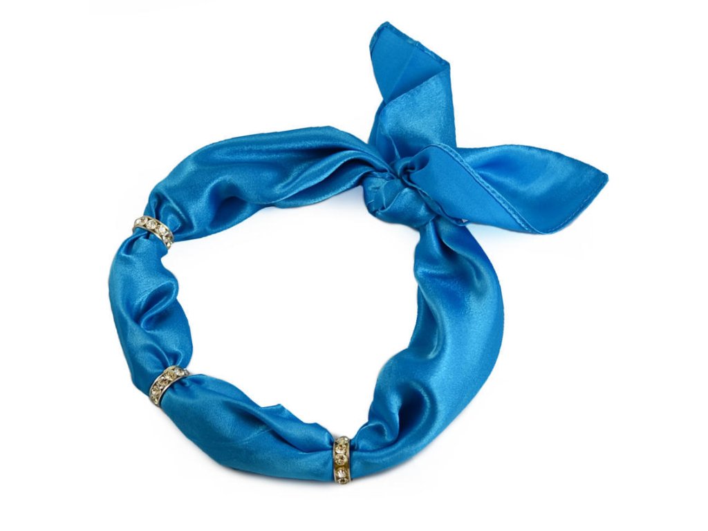 Jednobarevný saténový šátek působí elegantně i samostatně, s bižuterní ozdobou se však promění v opravdový módní klenot. Stylové štrasové kroužky lze navíc kdykoli jednoduše sejmout. Doporučujeme!