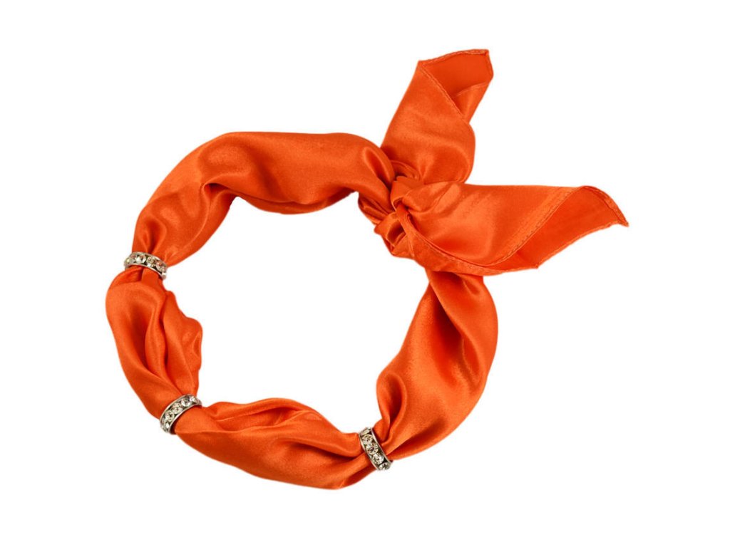 Jednobarevný saténový šátek působí elegantně i samostatně, s bižuterní ozdobou se však promění v opravdový módní klenot. Stylové štrasové kroužky lze navíc kdykoli jednoduše sejmout. Doporučujeme!