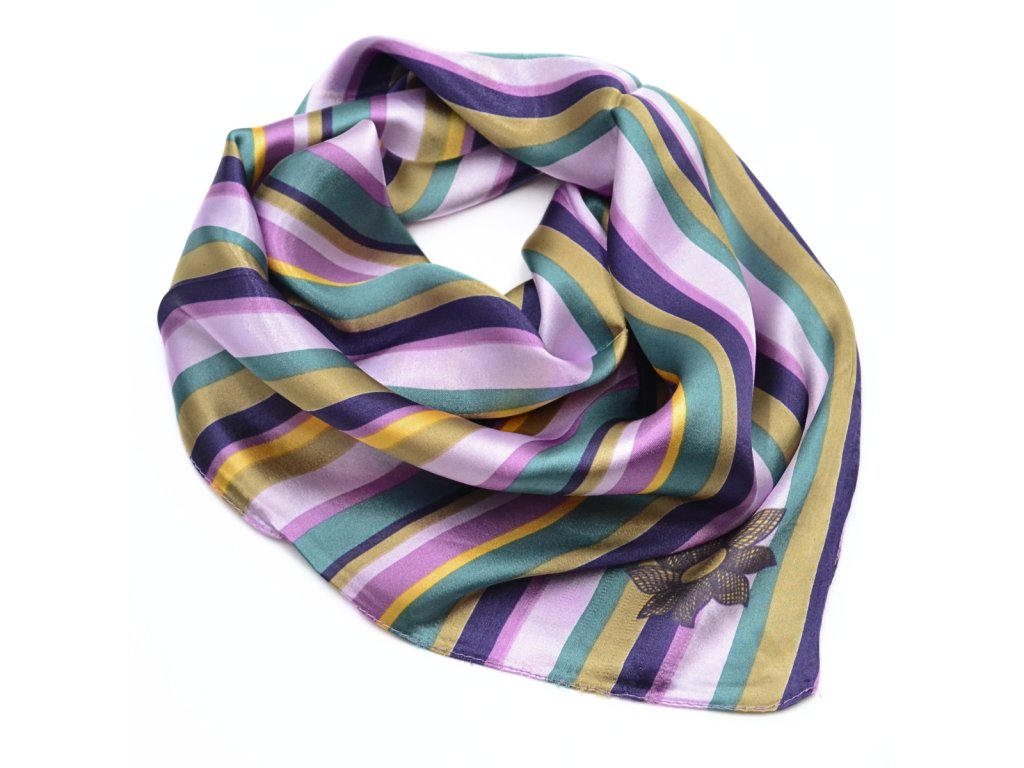 Saténový šátek je vhodným dárkem pro dámu každého věku. Může se nosit samozřejmě na krku, ale i jako zajímavý doplněk ke kabelce. Skvěle se udržuje a je příjemný na dotek.