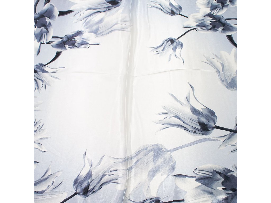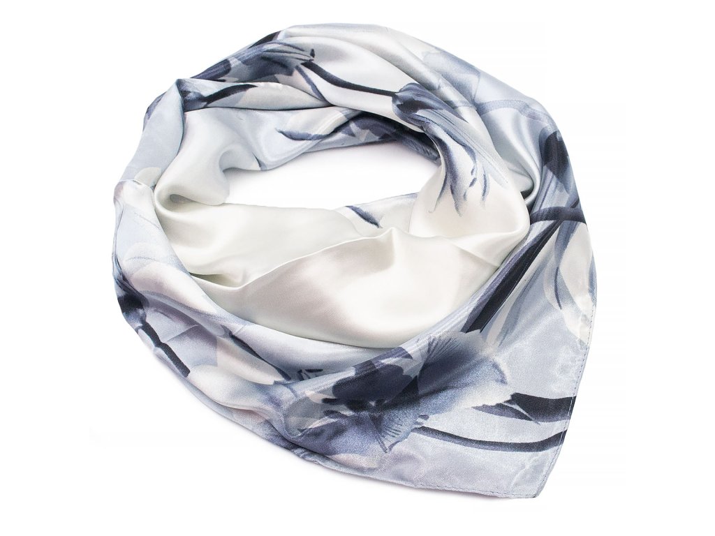 Šátek saténový - šedo-bílý s květinovým potiskem