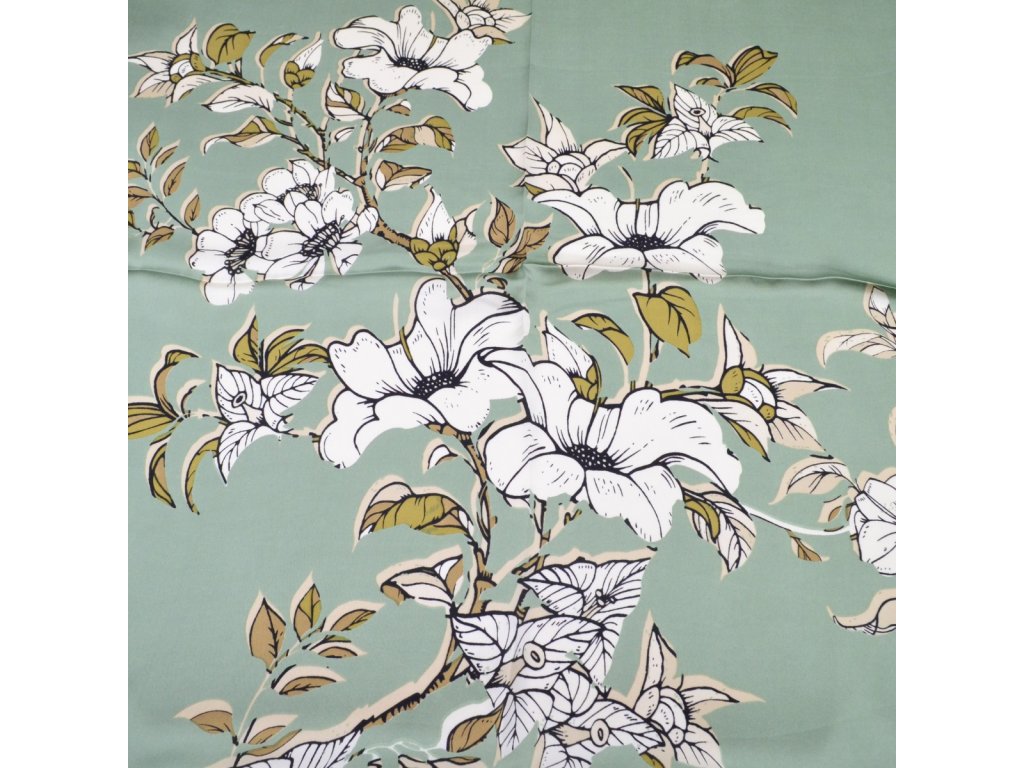 Šátek - zelený s květinovým potiskem