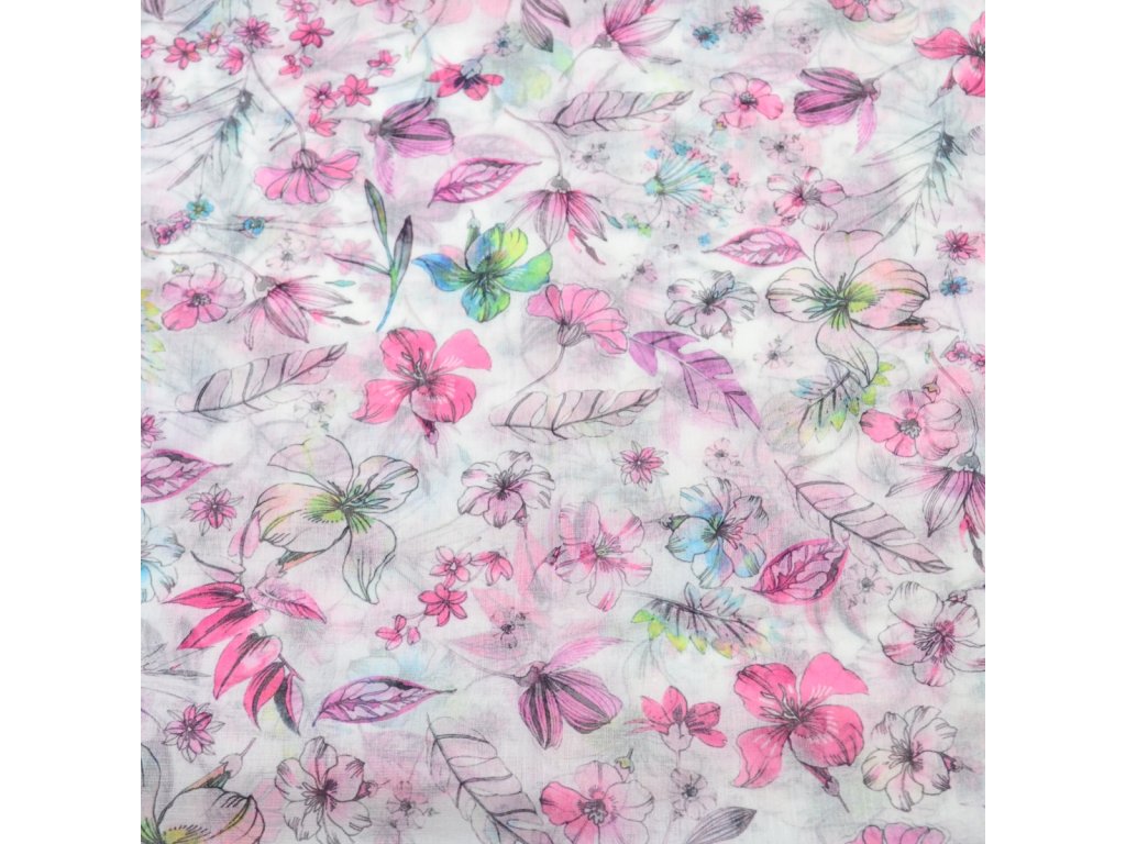 Tunelová šála - bílo-růžová s květinovým vzorem